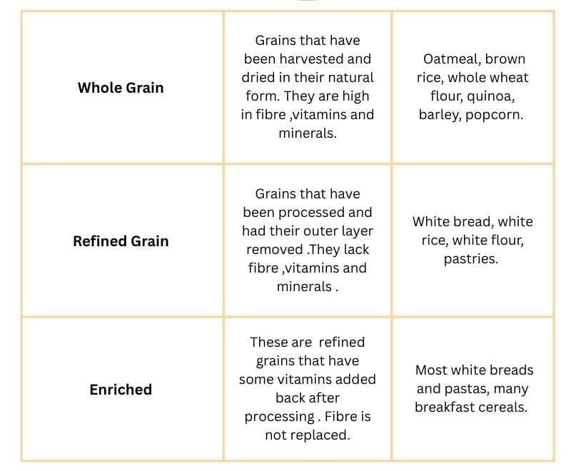 - Choose whole grains over refined or enriched products .Whole grains are high in fibre, vitamins and minerals.