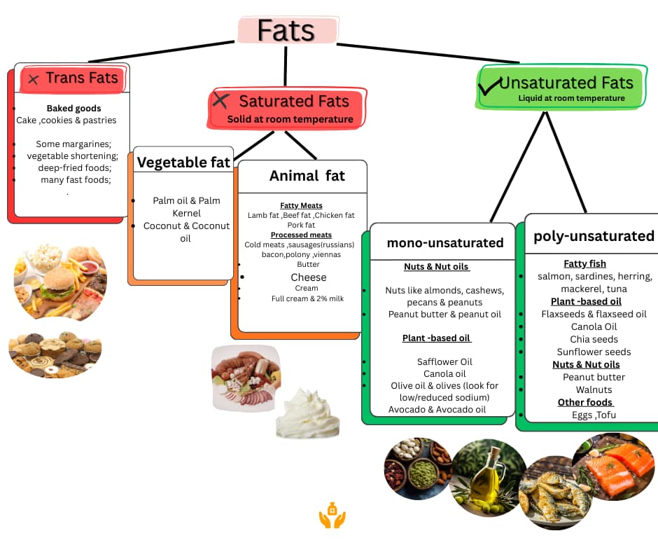 There are 3 types of fats : unsaturated ,saturated and trans fats.